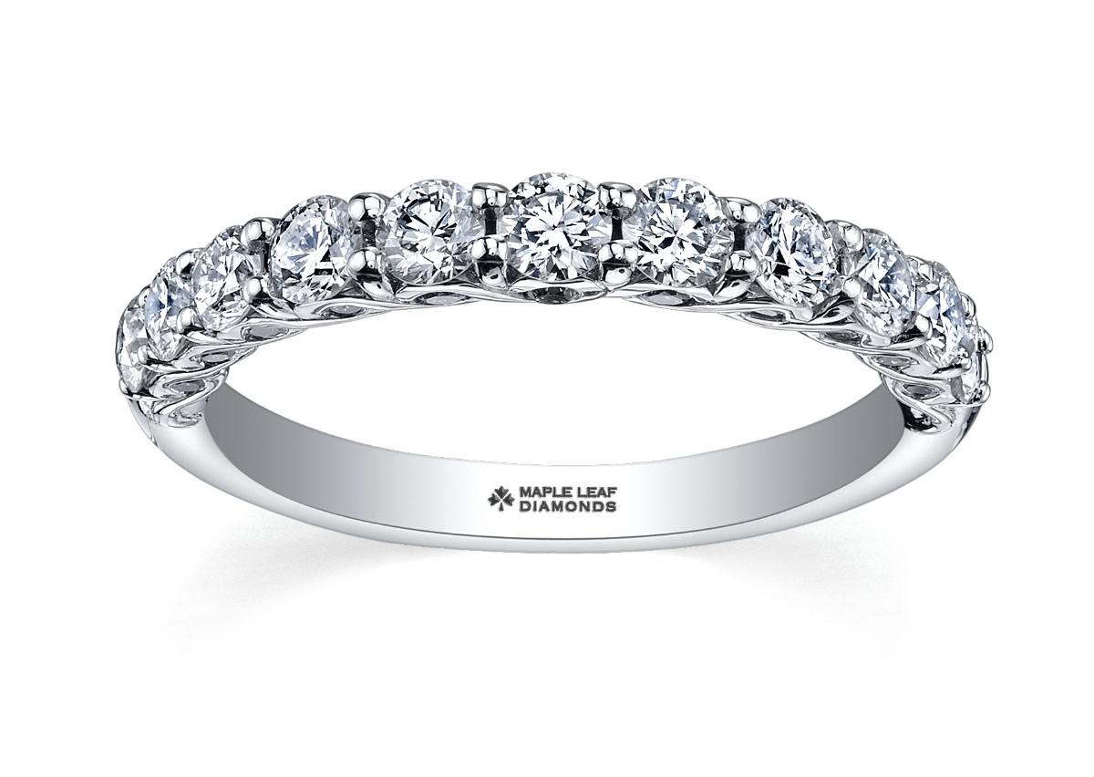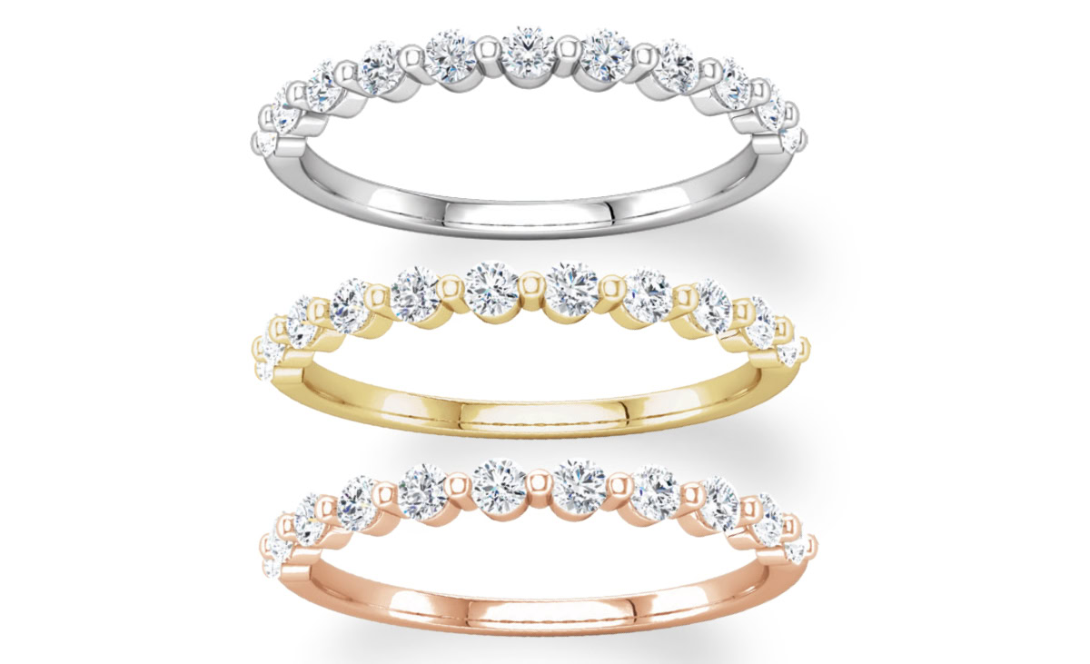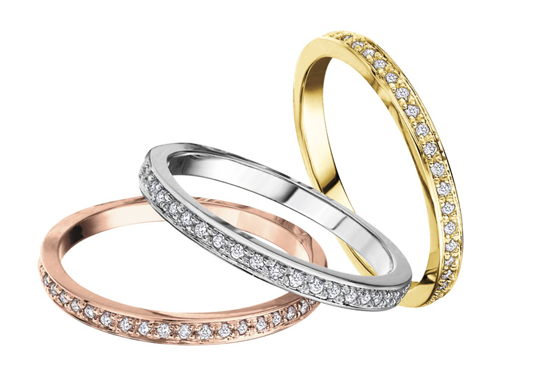 Looking for a diamond wedding band to compliment your engagement ring, to wear by itself or to stack next to others? Perhaps to celebrate an anniversary? Choose to make a bold or subtle statement with our vast collection of ring styles. Find the colour, stone, metal, or pattern and add some sparkle to your life!