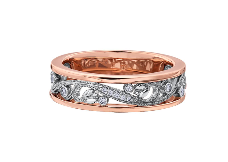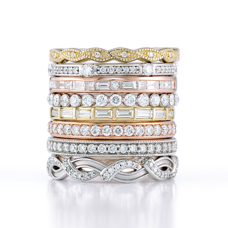 Looking for a diamond wedding band to compliment your engagement ring, to wear by itself or to stack next to others? Perhaps to celebrate an anniversary? Choose to make a bold or subtle statement with our vast collection of ring styles. Find the colour, stone, metal, or pattern and add some sparkle to your life!