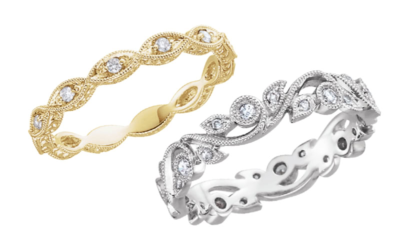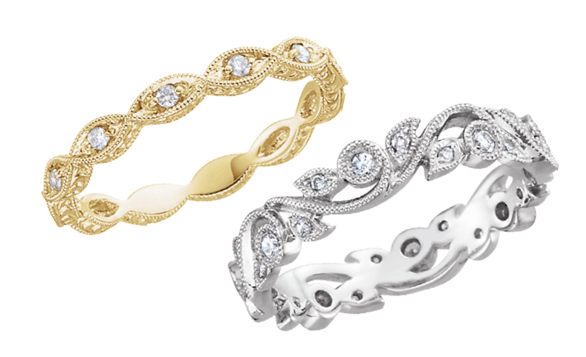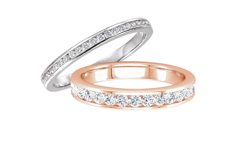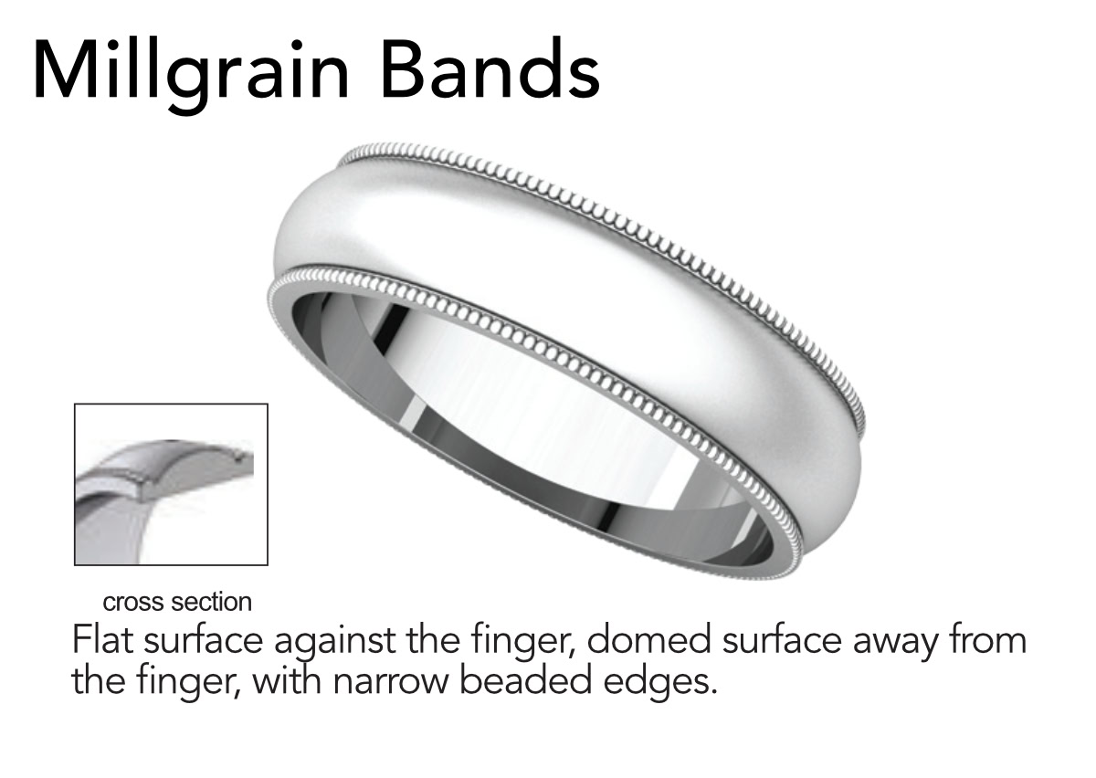 Classic bands never go out of style. We offer bands in traditional, light or heavy weights and in a variety of mm widths ranging from 2 up to 8. Choose from platinum, white, yellow or rose gold and even pick 10k, 14k or 18k. Personalize it with a message and select from a number of engraving styles. You even have the option of a choosing a special finish.